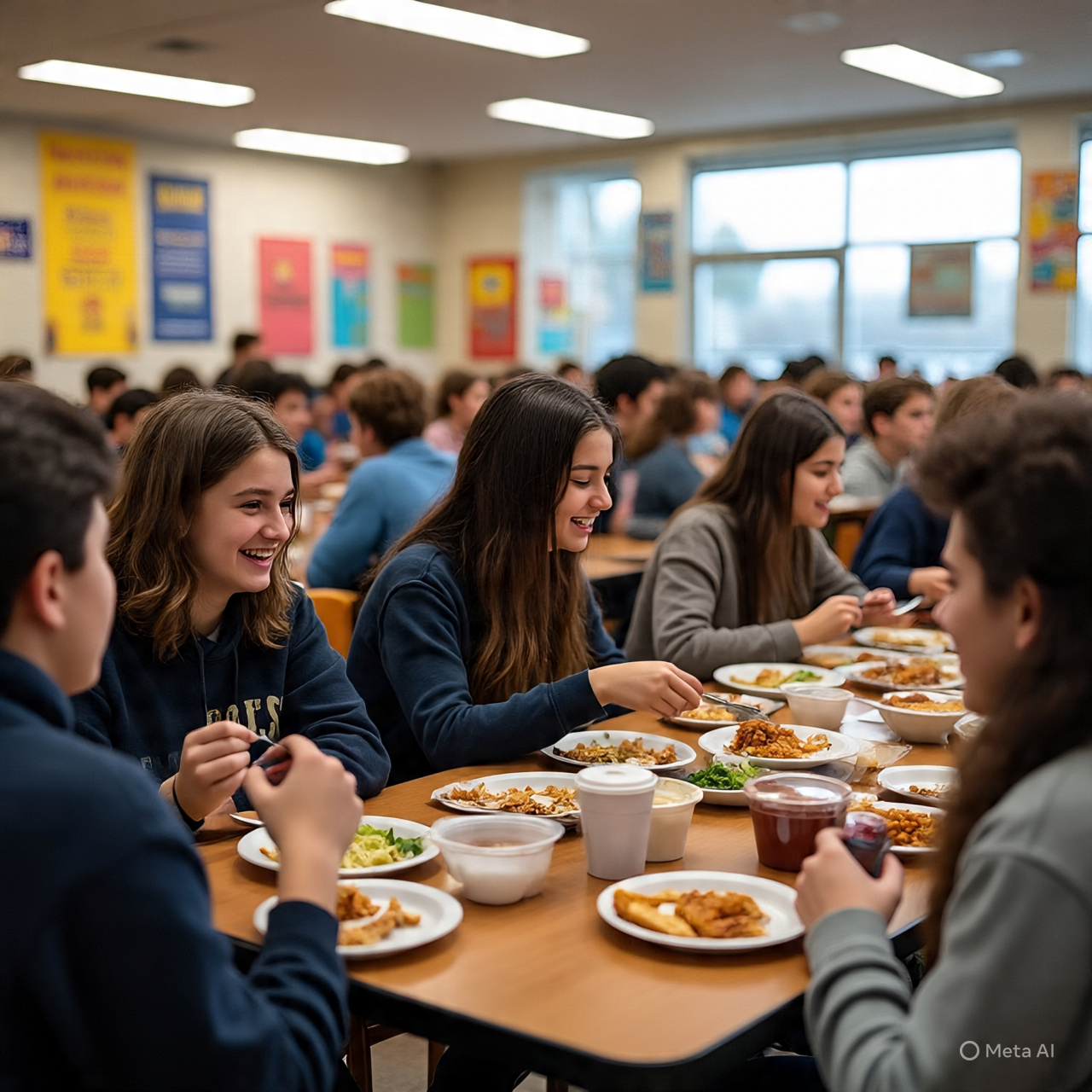 Our students in the cafteria having a nice and healthy meal